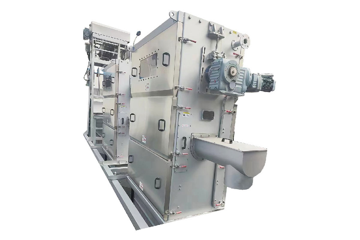 该设备主要由驱动装置、机架、牵引链条、带提升阶梯的网板、冲洗系统及电控系统等主要部件组成。驱动电机安装在机架正向的主轴上,两侧网板在传动链条的带动下,自下而上将其长度范围内截留的污物向上提取,抵达上部时,通过链轮的转向功能,在顶置的冲洗装置的冲洗水作用下,自动完成卸污工作,渣水排入两侧网板之间的集渣槽后自流排出机外。