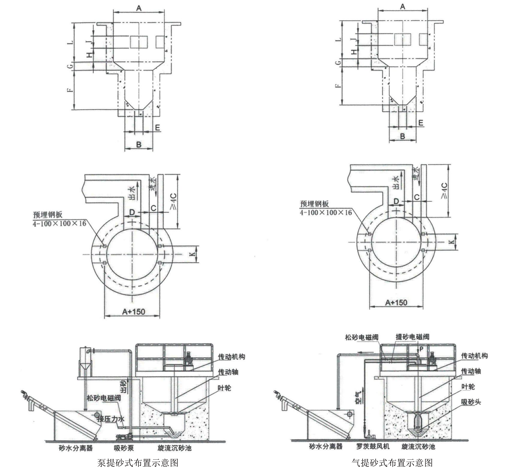 ◆ 提砂方式有两种:气提式和泵提式,气提处理效果相对较好,泵提成本相对较低;