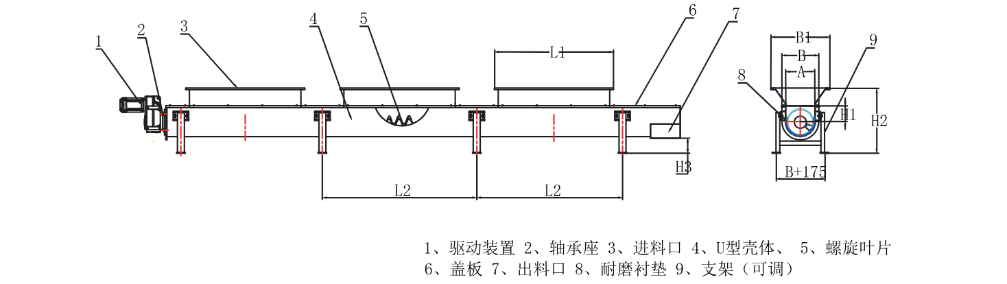 ◆ 输送方向由螺旋叶片的螺旋方向和电机的旋转方向确定,可实行双向输送。