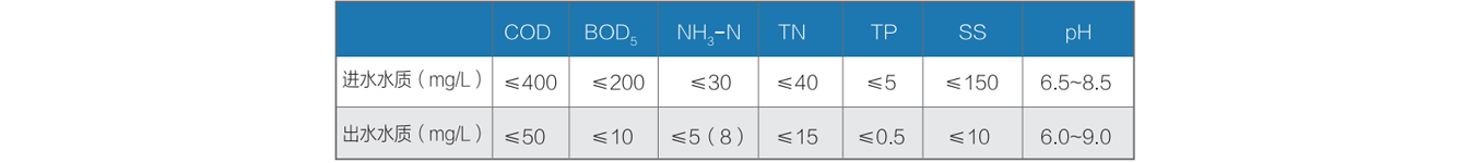 出水水质可达《城镇污水处理厂污染物排放标准》GB18918-2002中一级A标准(TN、TP按实际项目要求)。