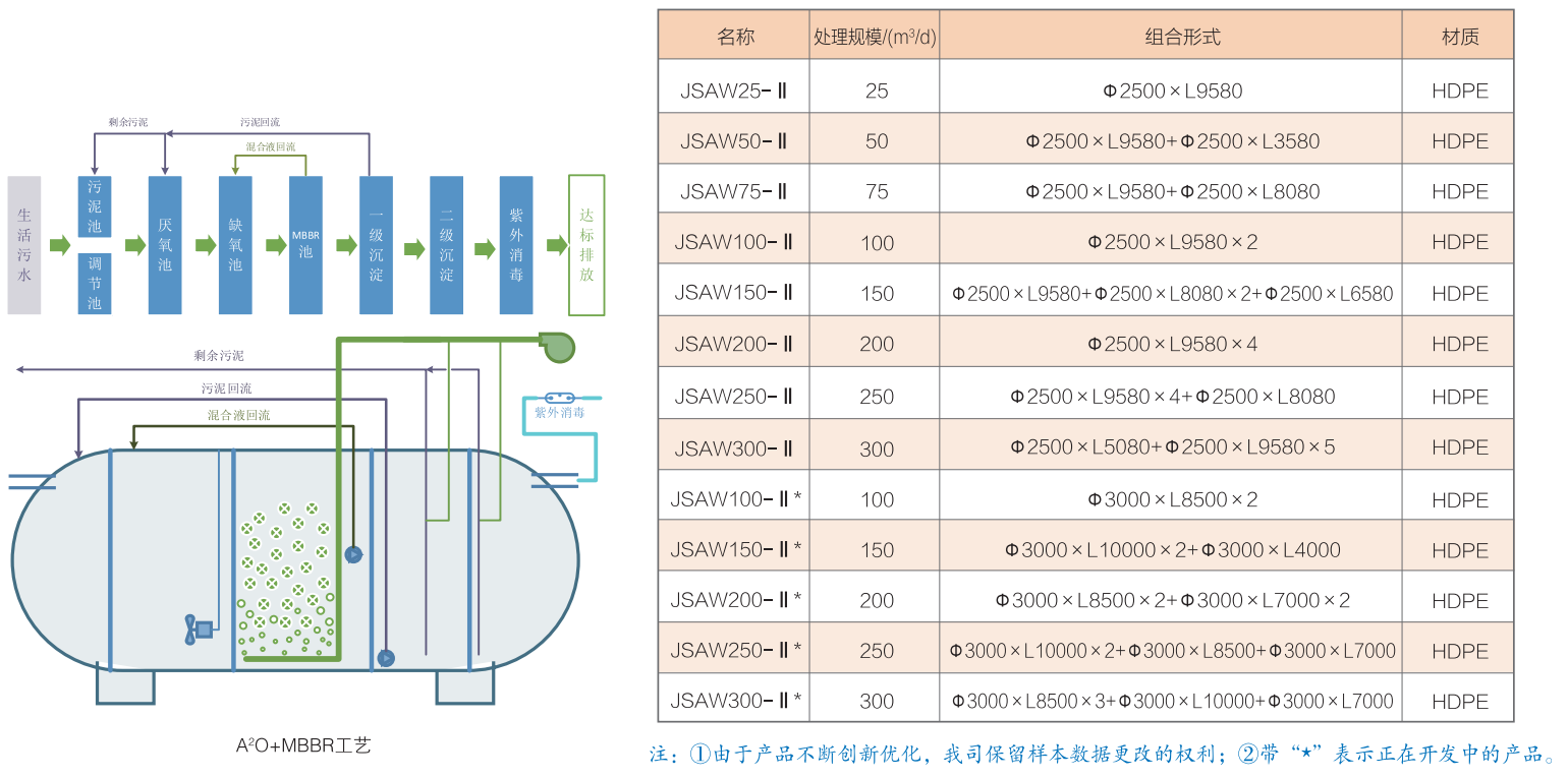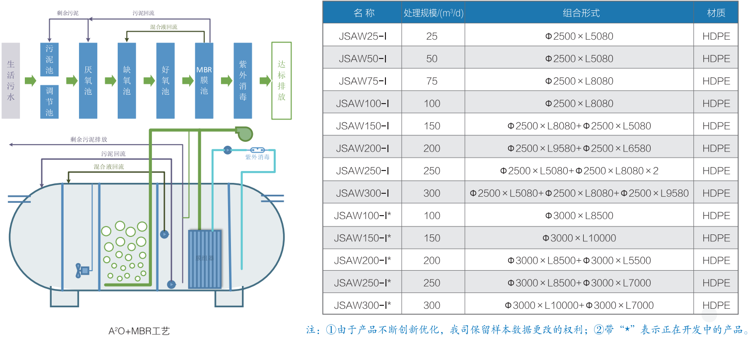 ★ 主体工艺和罐体壁厚可按实际需求调整,适合多种工艺如SBR、A²O+MBBR、生物膜法等,可按实际工程所需设计。